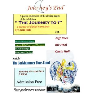 'The Journey To ?' Works by Chris Hall 'Y Daith I ?' gan Chris Hall 20 January - 14 April 2013 Works by Welsh artist Chris Hall - a decade of digital media narratives Private View - Sunday 20 January 2 - 5 to be opened by Professor Pitts, Professor of Art, Middlesex University